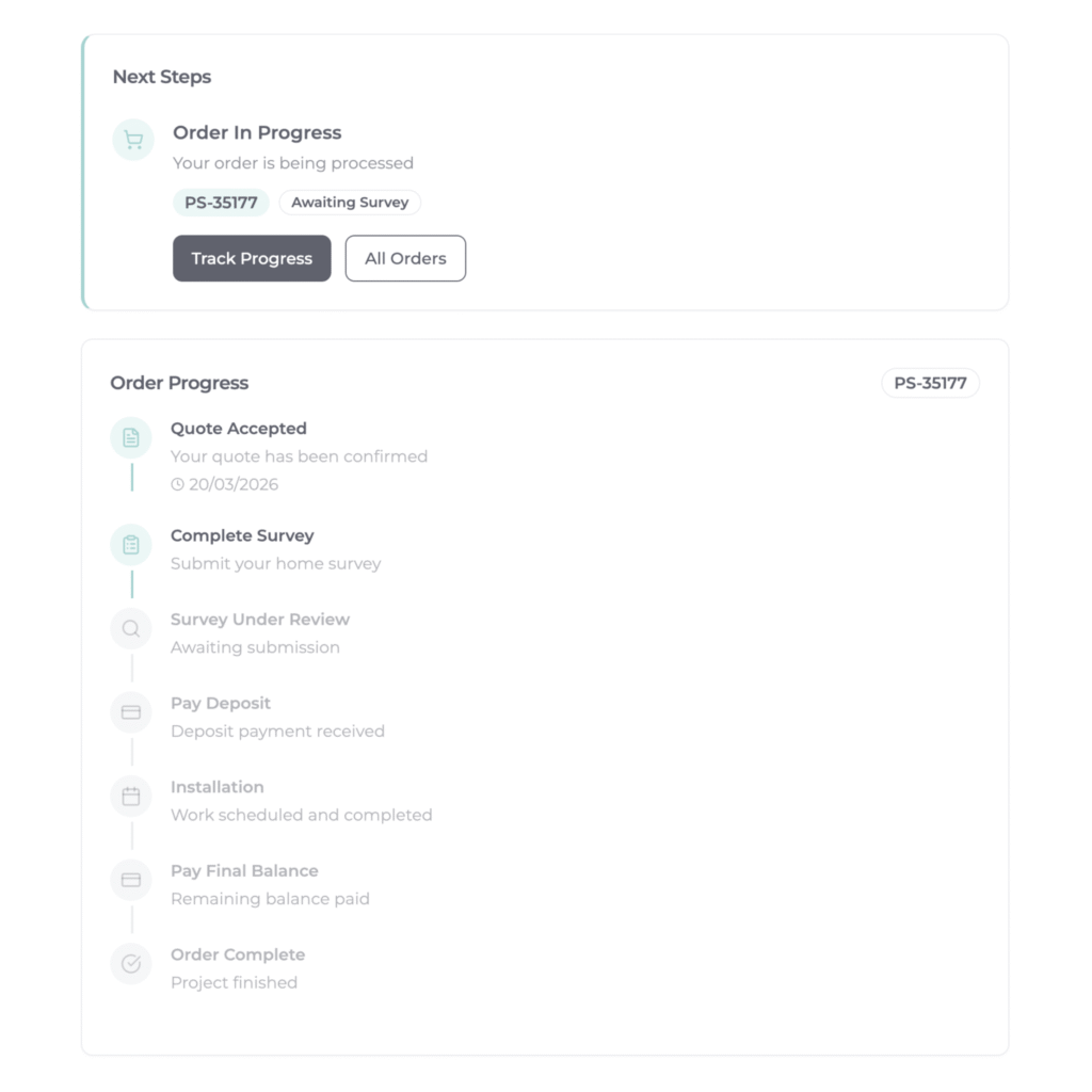 At Pro Spaces, we keep the process straightforward. From your first quote to installation day, everything is managed through your Client Portal.  Giving you clear updates, one place for documents, and direct access to our team. No hassle, no chasing, just a smooth journey from start to finish.